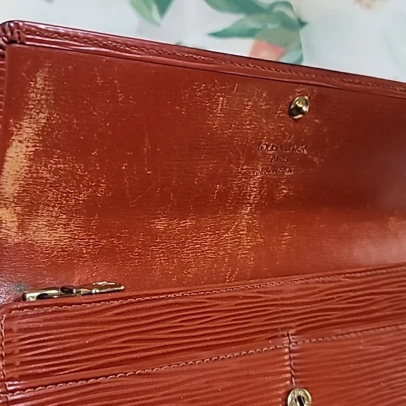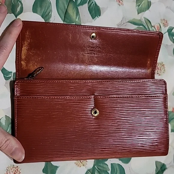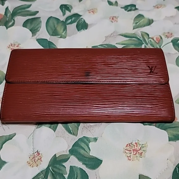 Organize your bills and cards in this functional Sarah wallet by Louis Vuitton. Having a luscious epi leather exterior, this wallet features a snap flap closure, six card slots, one large flap coin pocket and two bill compartments in front and behind the flap coin pocket. Height 4.5" x Length 7.5" x Width 0.5"🅶 Good condition. Previously owned with signs of normal-moderate wear. See photos and video. If you're curious yet undecided, ask for additional information and pictures. Open to offers. 🤎 Sales are final. Capriciously, ᎦᎮᎧTTᏋᎠ FᏘᏋRIᏋ ƹӝʒ