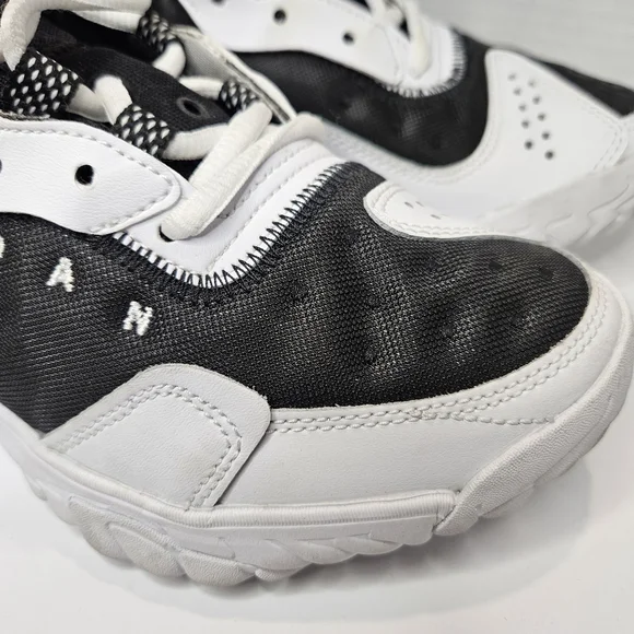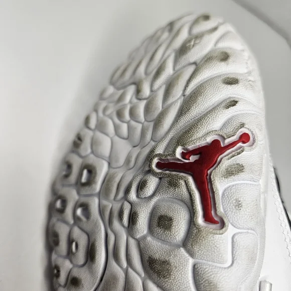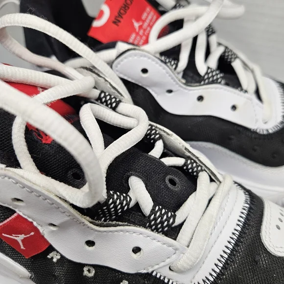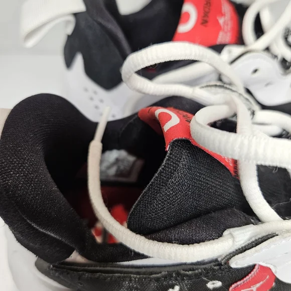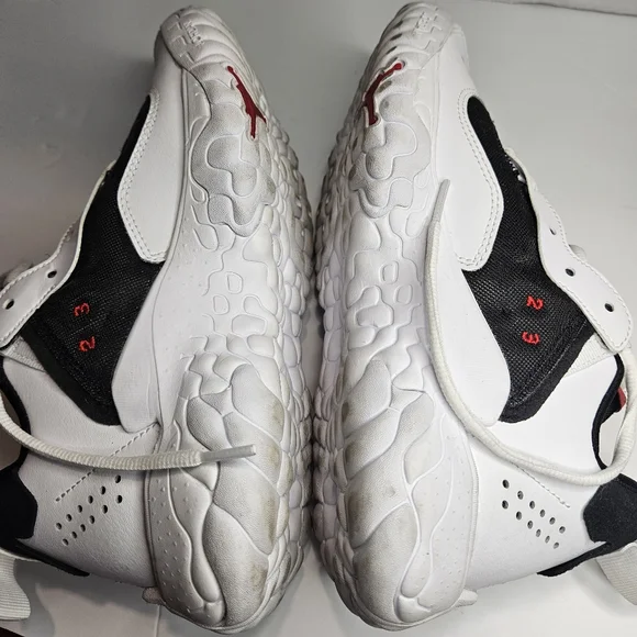 Jordan Delta 2'sChicago Bulls Colorway White, Black RedUS Youth Size 5.5Y (Kid)Low Top SneakersHard size to findThe mudguard along the outer midfoot provides side-to-side stability. The flexible tongue creates a snug fit. The woven label with micrographics adds a futuristic style. The heel pull loop offers easy wearability. The suede and synthetic overlays add structure. The see-through mesh brings a foot-hugging sensation.See photos for details and condition. Has some signs of wear on bottom sole from being tried on in store. Priced accordingly.